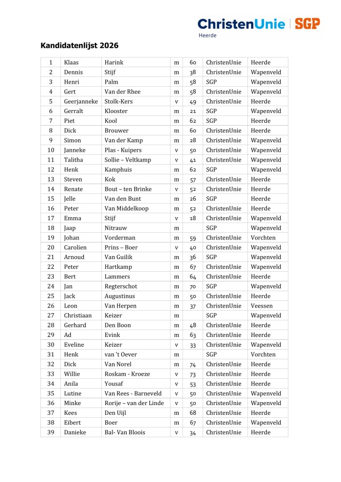 ChristenUnie I SGP Heerde presenteert kandidatenlijst voor verkiezingen 2026