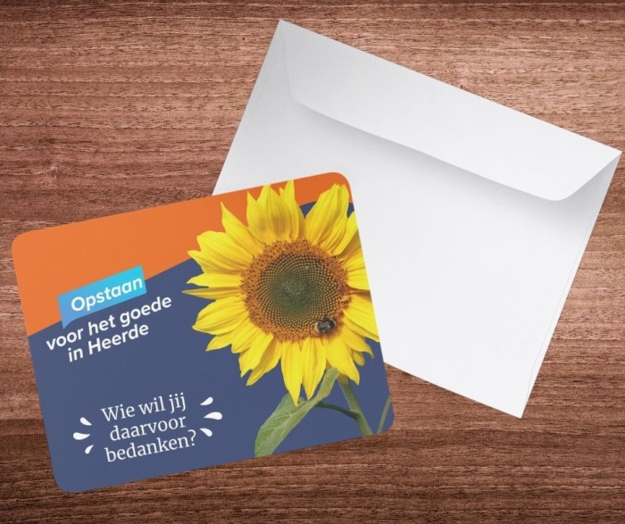 Inwoners konden na het gesprek een kaartje invullen om iemand te bedanken die volgens hen “opstaat voor het goede in Heerde”. Die actie leverde tientallen inzendingen op. Uit alle kaartjes werden uiteindelijk twee namen getrokken van inwoners die in het zonnetje zijn gezet met een bos bloemen.